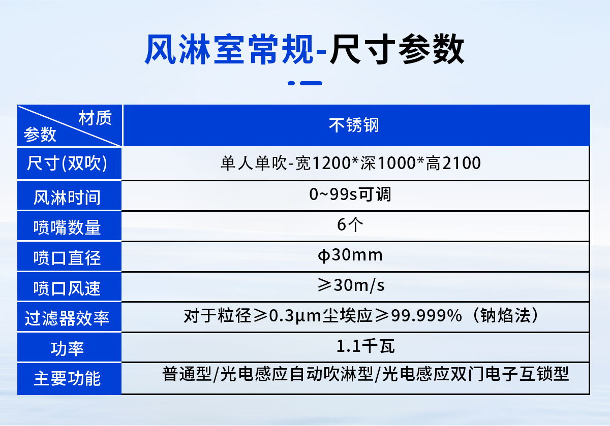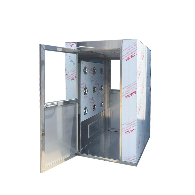 描述:風(fēng)淋室是人員或貨物進(jìn)入潔凈區(qū)由風(fēng)機(jī)通過風(fēng)淋噴嘴噴出經(jīng)過過濾的空氣,吹除人或物體表面吸附塵埃的一種通用性的局部?jī)艋O(shè)備。